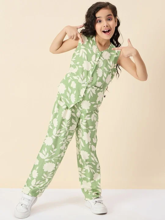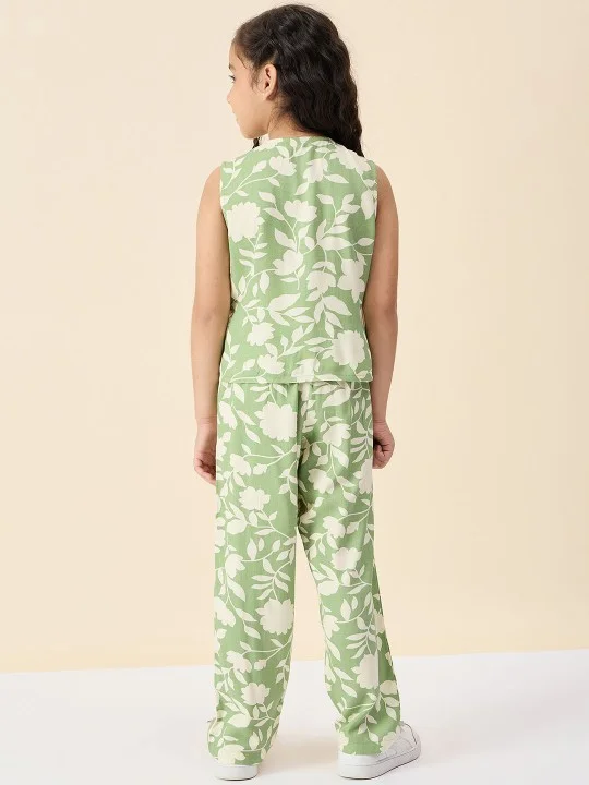 This clothing set consists of Top and TrousersGreen and off white printed Top, has a v-neck, sleevelessGreen and off white printed Trouser, has a slip-on closure