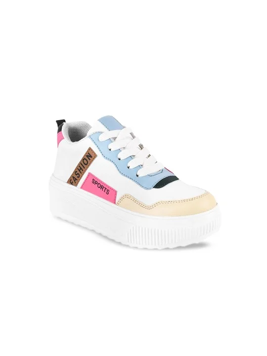 A pair of round toe white flatforms ,has regular styling,Velcro detailSynthetic upperCushioned footbedTextured and patterned outsole